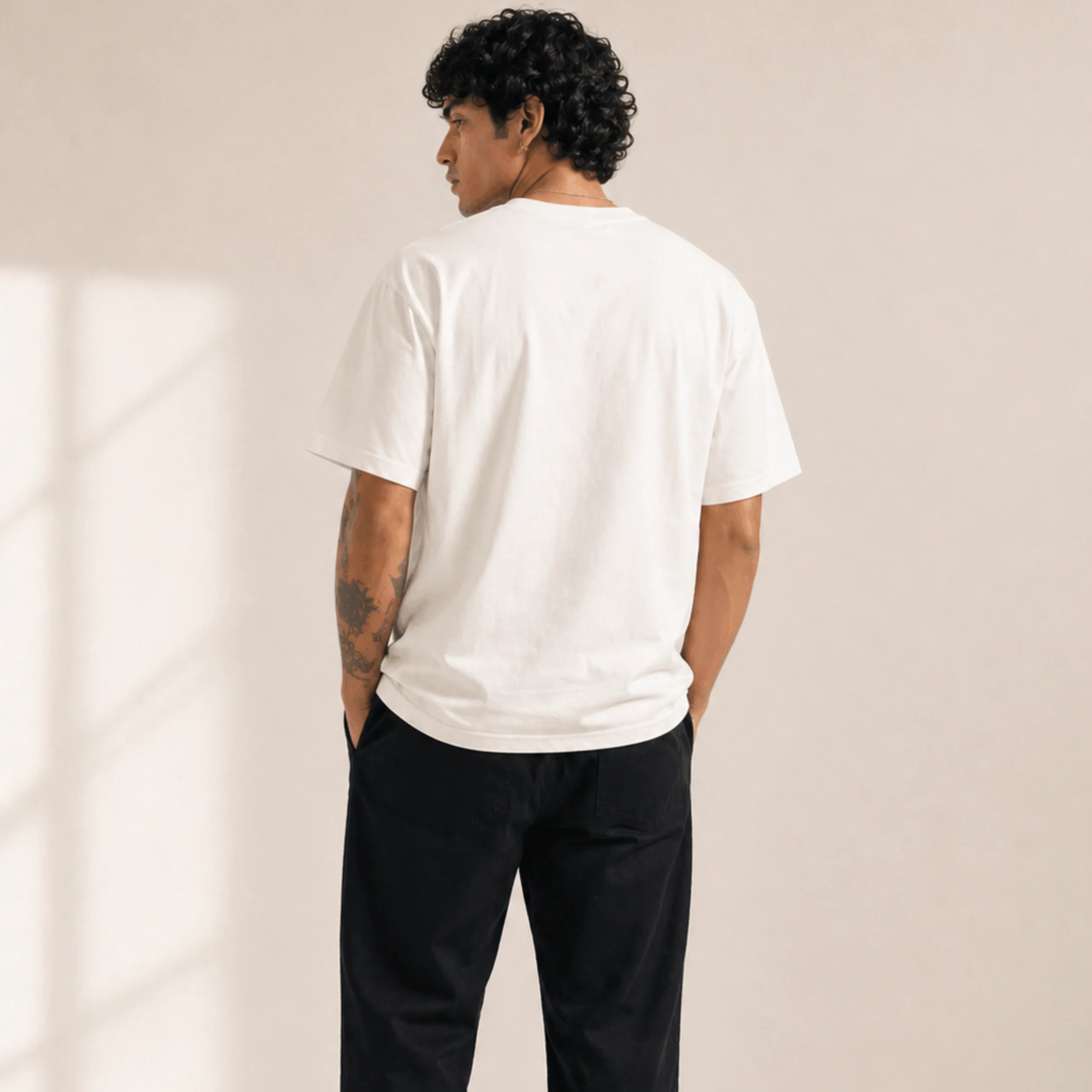 Unlike regular tees, this fabric gives a more elevated and premium drape, making it perfect for streetwear styling.