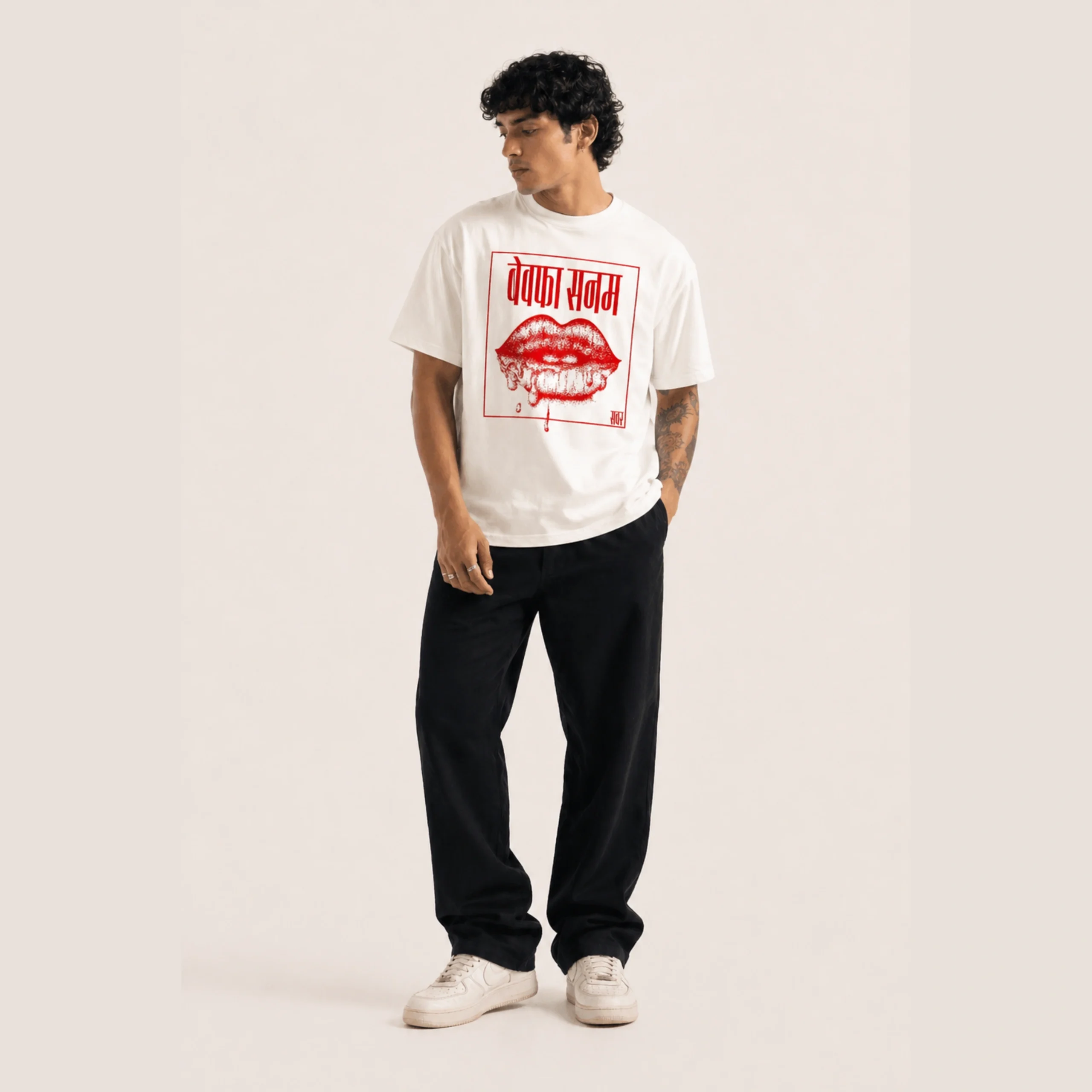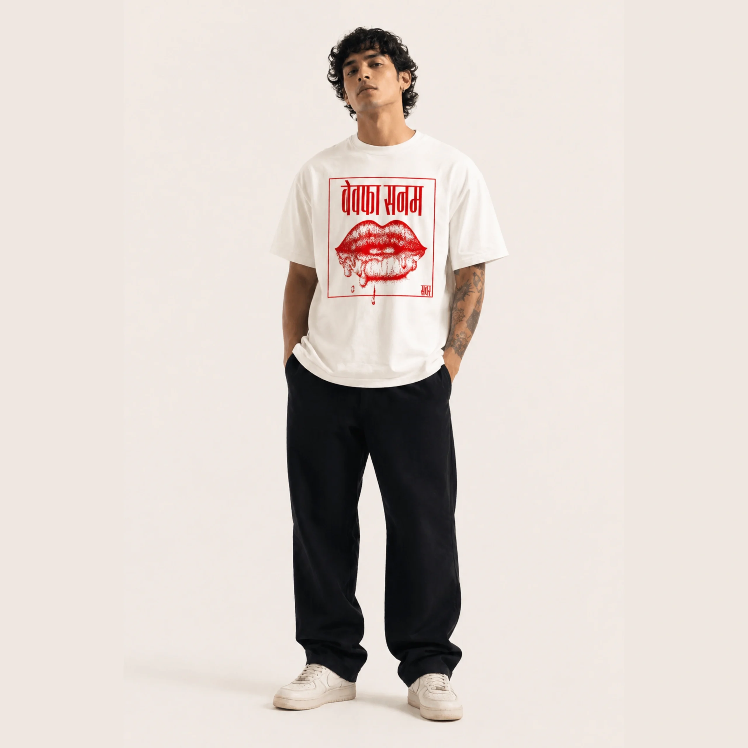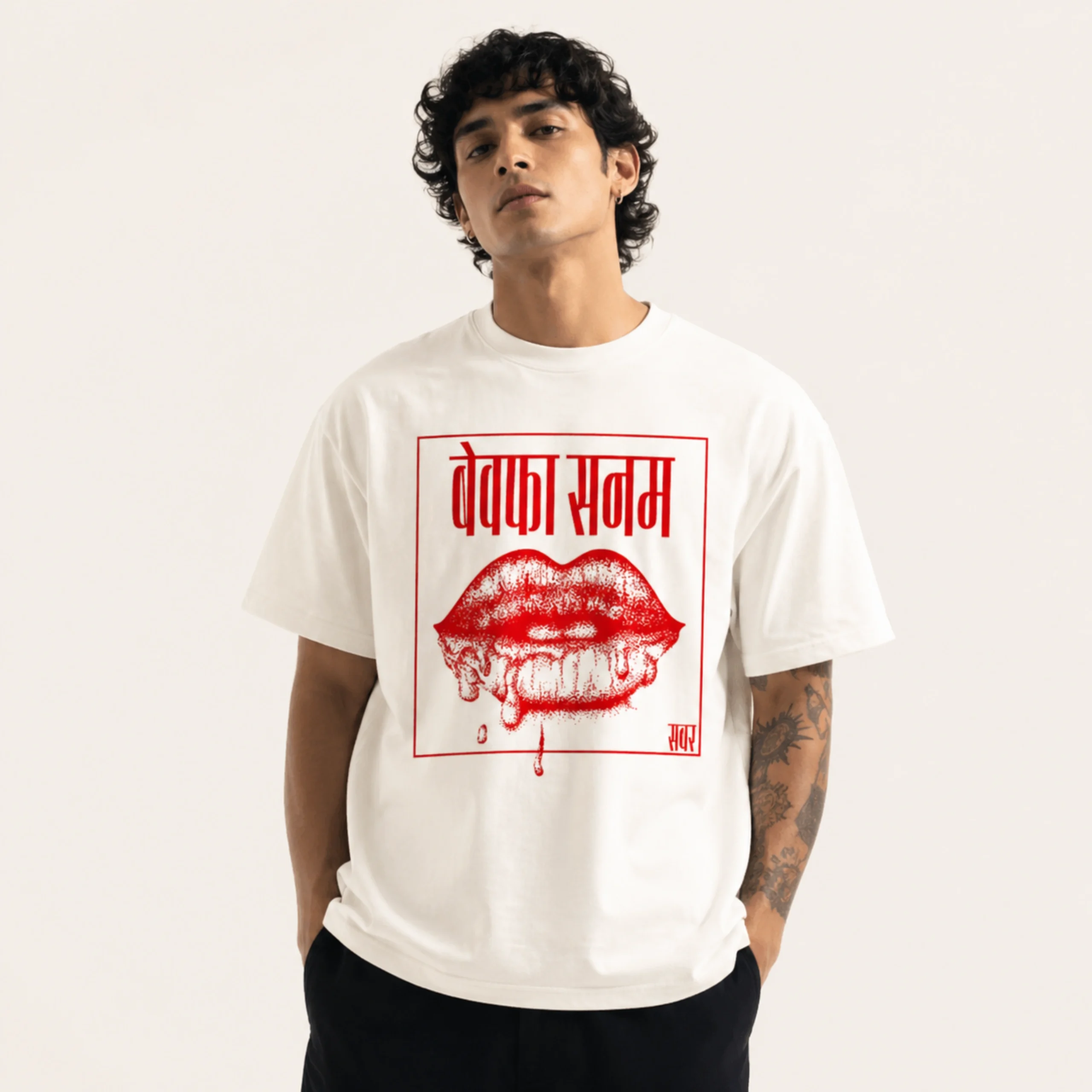 The Bewafa Sanam tee combines premium fabric, bold design, and a relaxed oversized fit — making it a go-to choice for everyday streetwear.